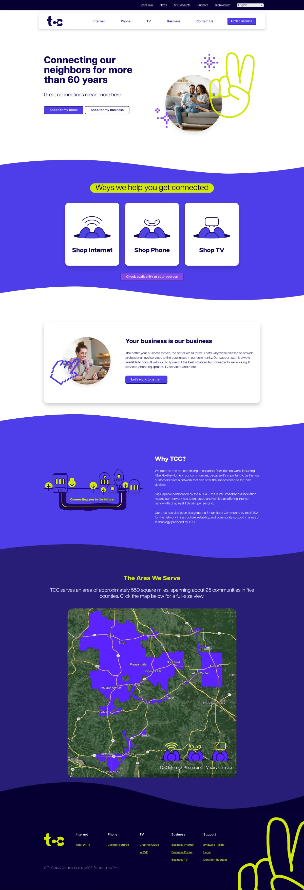 As the project manager for the TCC Pro website, I led the team in creating a fresh, user-friendly online experience for a trusted local telecom provider. From coordinating content and design to overseeing development and launch, I made sure the site highlights TCC’s commitment to connecting communities with reliable internet, phone, and TV services. The result is a modern, easy-to-navigate website that helps both residential and business customers find the solutions they need—while showcasing TCC’s fiber-rich network and community focus.